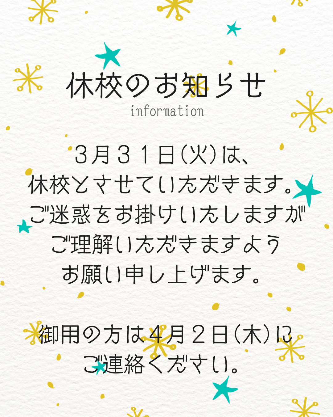 ゴールド ターコイズ 手書き風 星 お知らせ インスタグラム 投稿 縦長_20260330_182525_0000